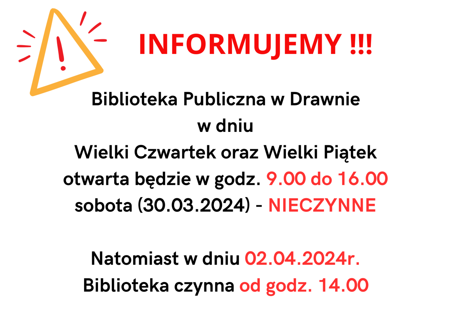 Biblioteka w dniu 18.03.2024r. czynna od...